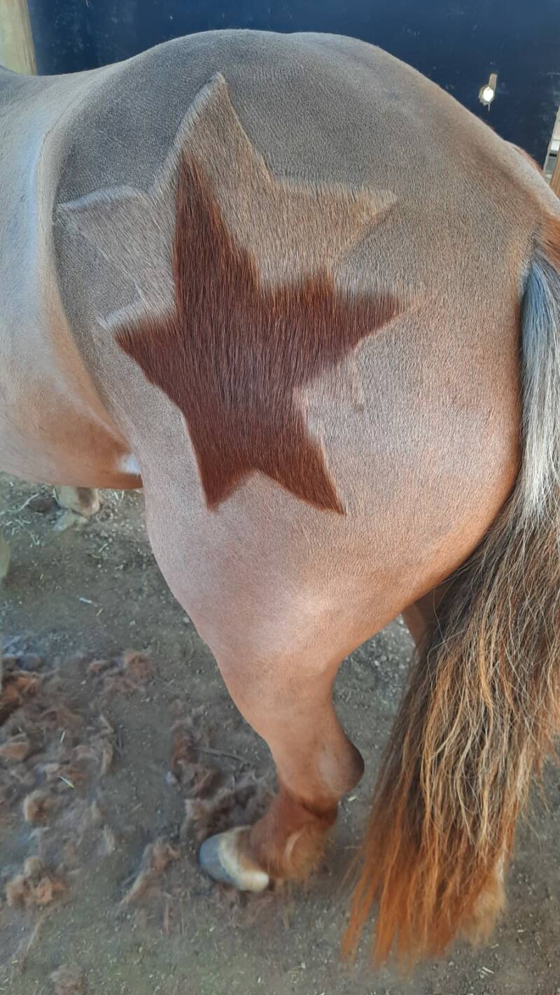 - Ik scheer het model dat jij wilt. Bij rijpaarden laat ik een klein dekentje over op de plek van het zadel. Naar wens kan ik simpele figuurtjes scheren op de billen. (Zie voorbeelden op foto's onderaan).