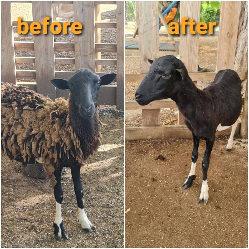 Voor het scheren van een ander dier (bijv. ezel, schaap) reken ik Nafl. 35,- per uur. Met schapen en ezels heb ik nu enige ervaring en dat ging prima. Ook met mijn scheermachine voor paarden en koeien. Als het dier niet kort aangebonden kan staan, heb ik assistentie van iemand nodig om het dier stil te fixeren. Het dier plat neerleggen ben ik geen voorstander van, ik heb ze graag staande.